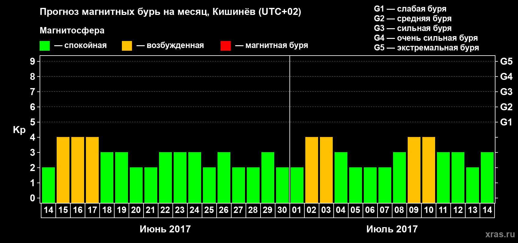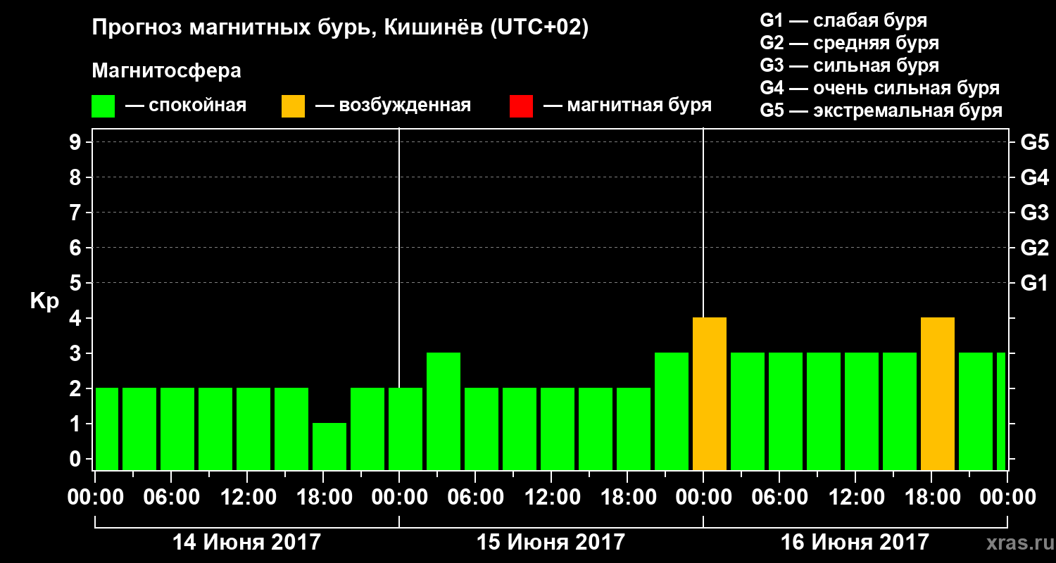 Прогноз магнитных бурь в Кишинёве — 14 июня 2017 года