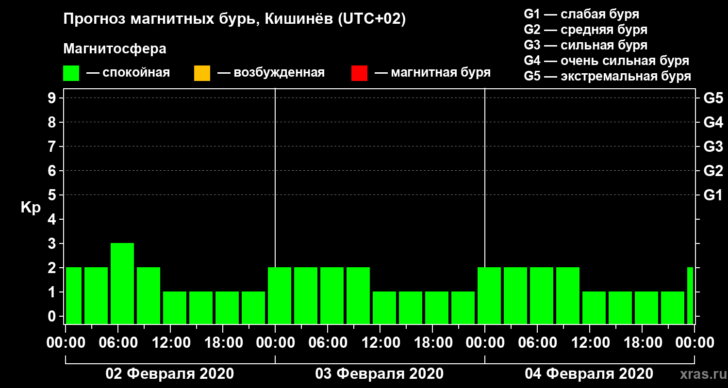 Прогноз магнитных бурь в Кишинёве — 2 февраля 2020 года