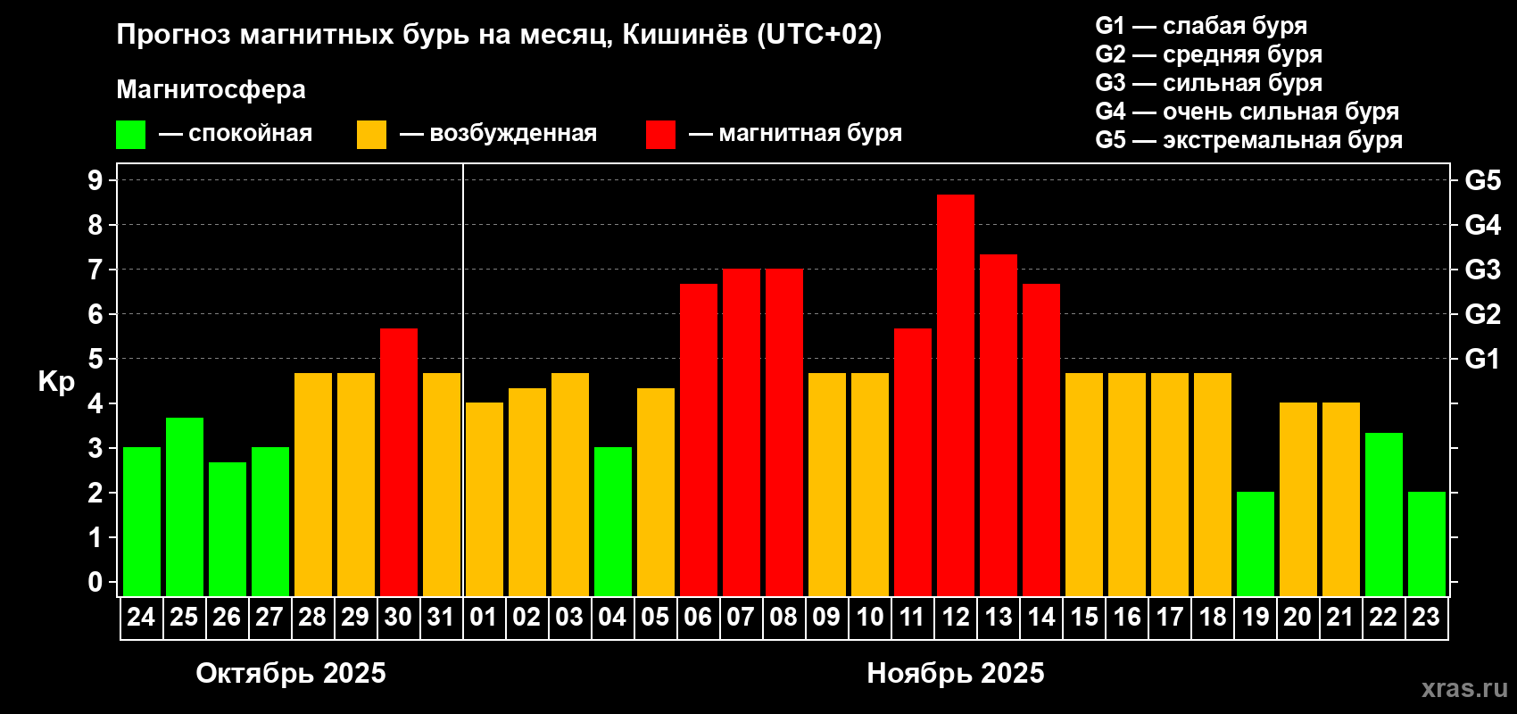 Прогноз магнитных бурь в Кишинёве — 24 октября 2025 года