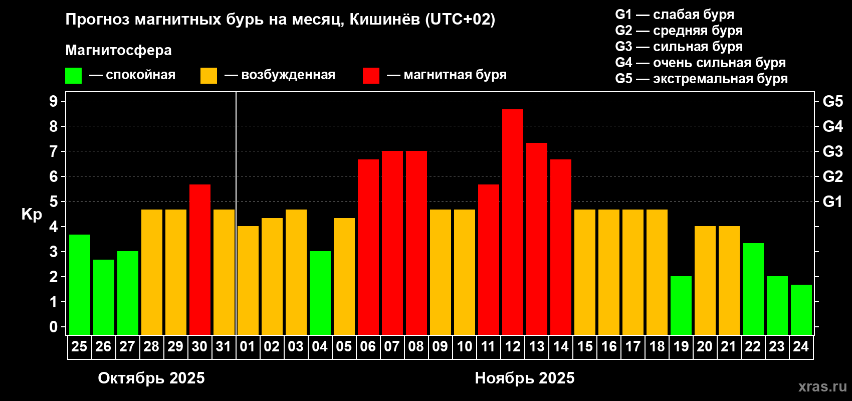 Прогноз магнитных бурь в Кишинёве — 25 октября 2025 года