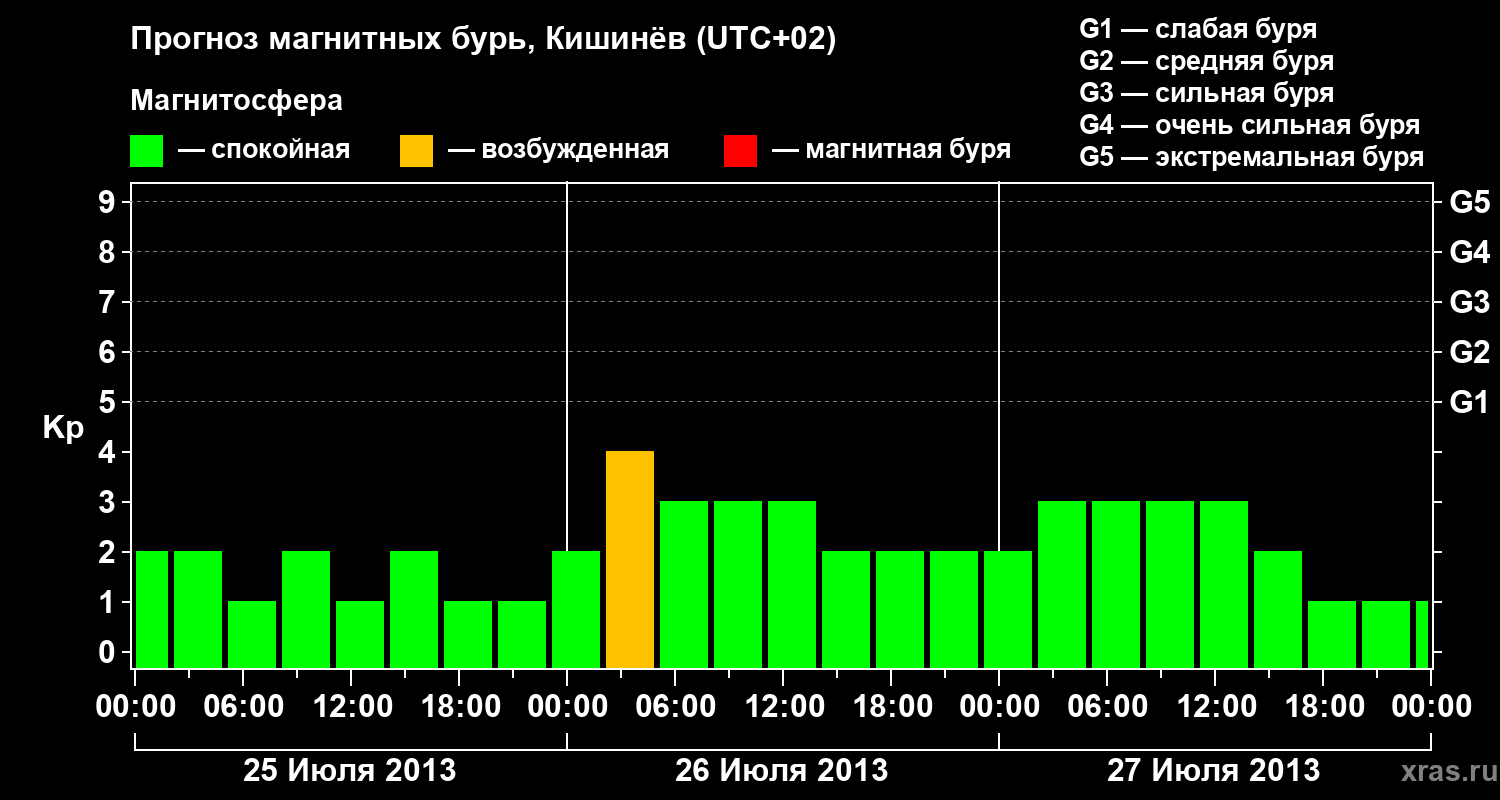 Прогноз магнитных бурь в Кишинёве — 25 июля 2013 года