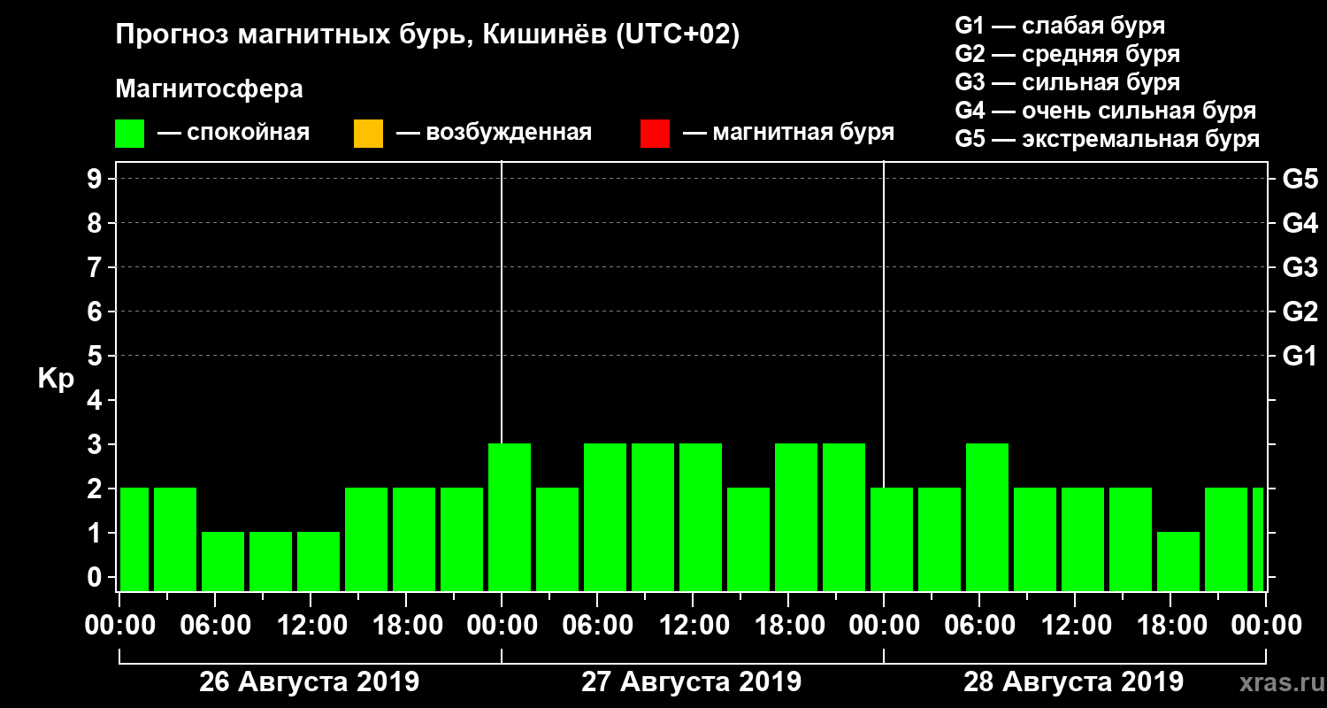 Прогноз магнитных бурь в Кишинёве — 26 августа 2019 года
