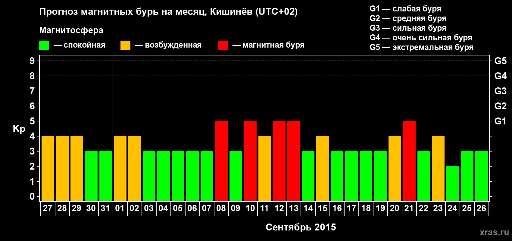 Прогноз магнитных бурь в Кишинёве — 27 августа 2015 года