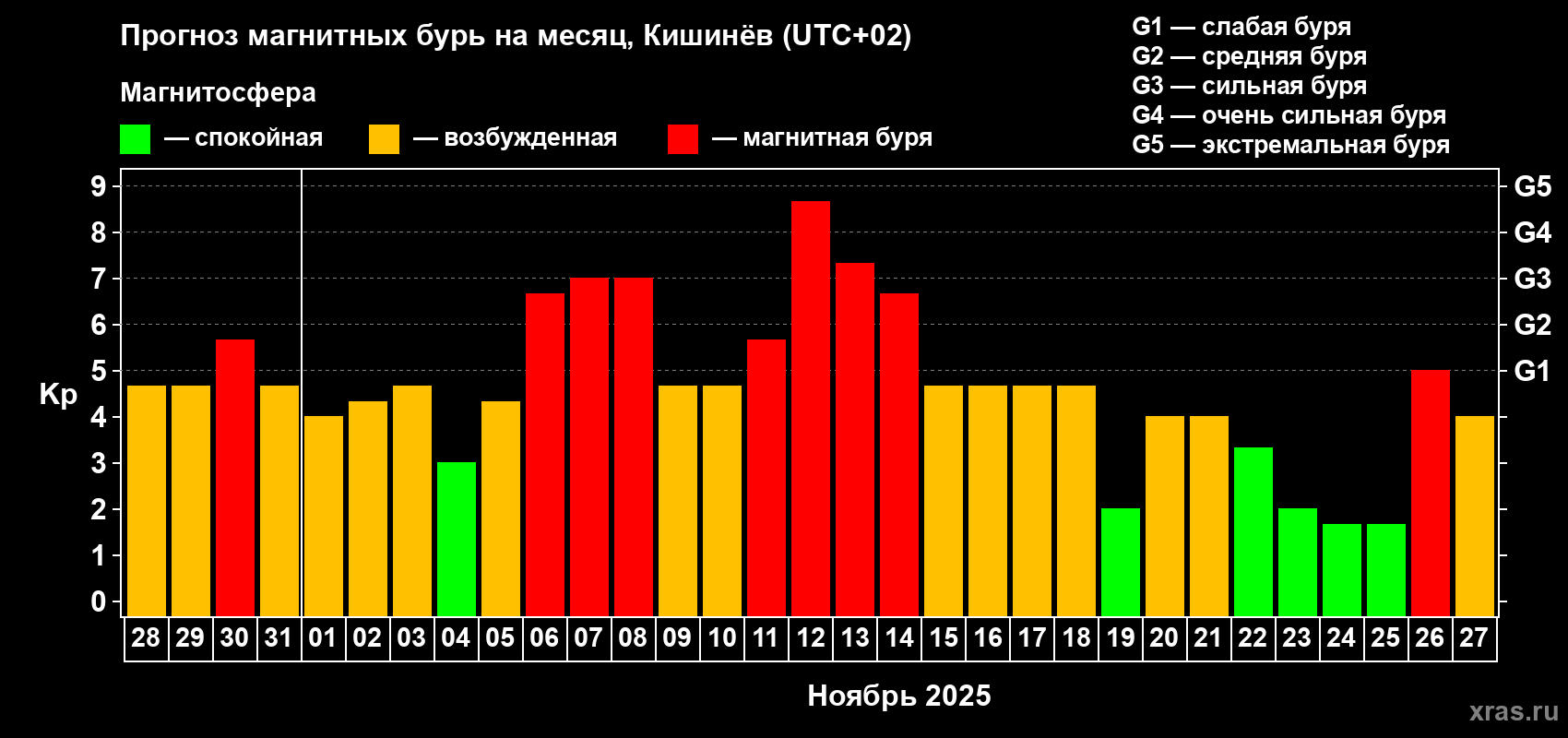 Прогноз магнитных бурь в Кишинёве — 28 октября 2025 года