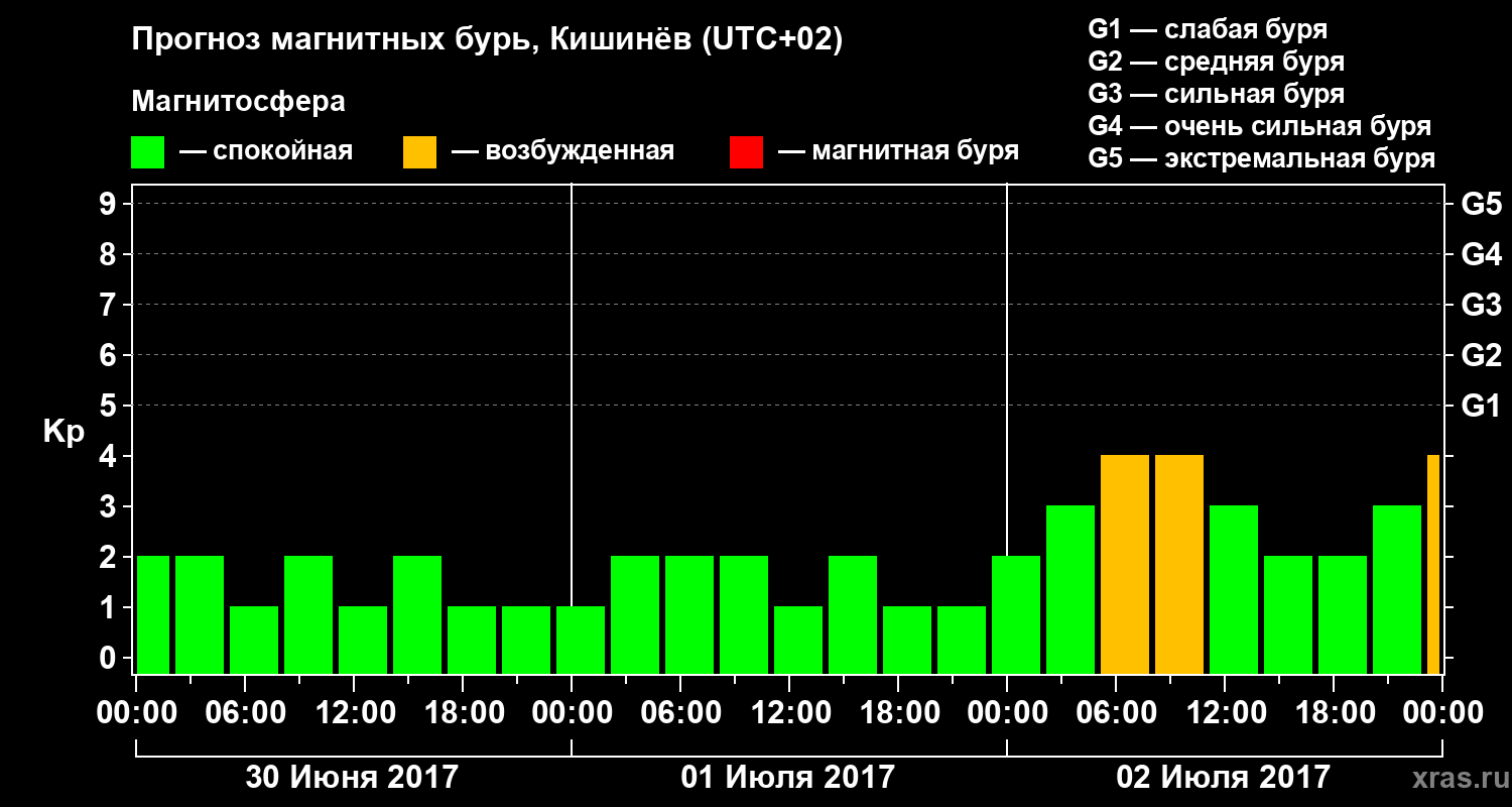 Прогноз магнитных бурь в Кишинёве — 30 июня 2017 года
