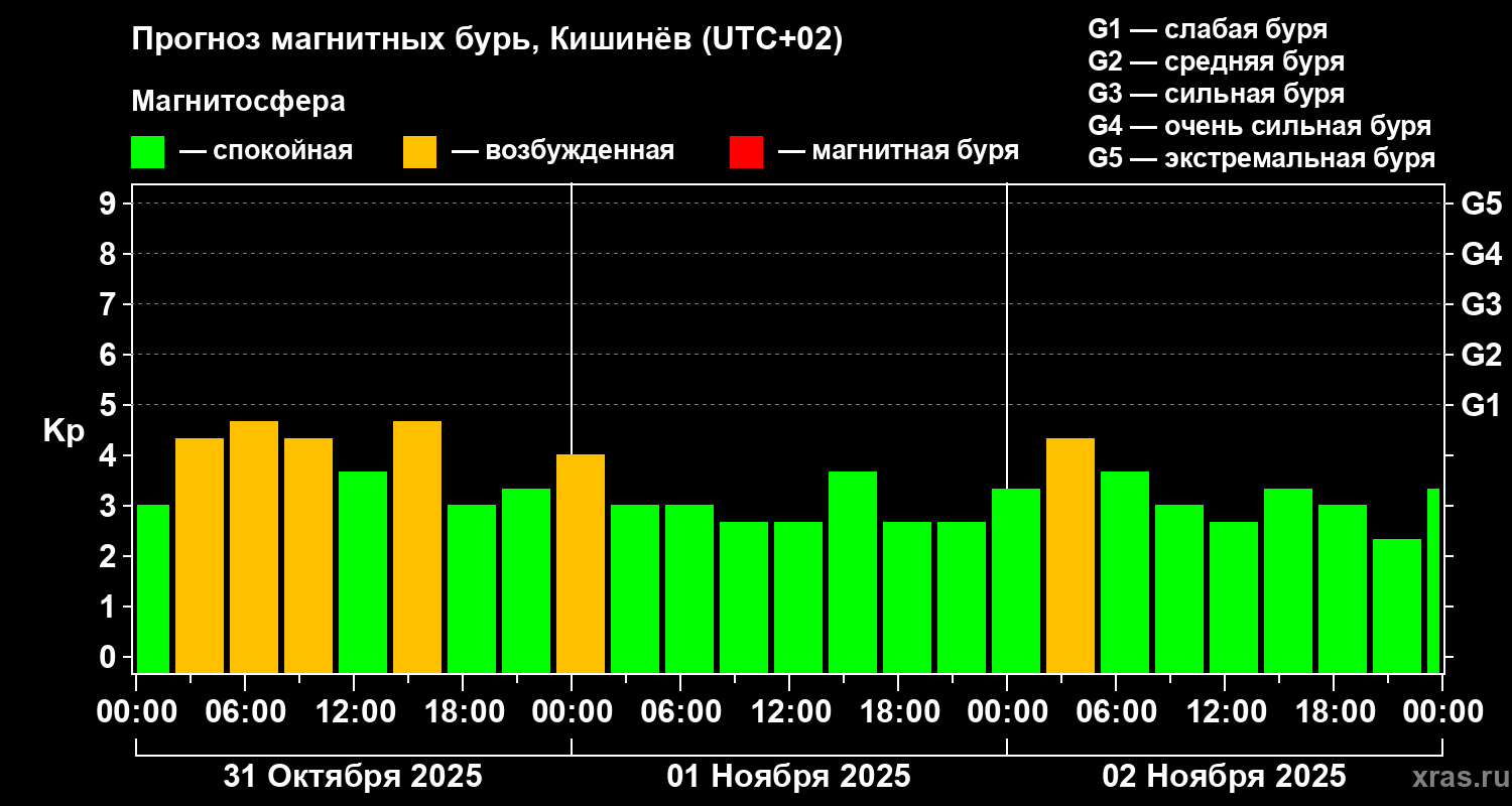 Прогноз магнитных бурь в Кишинёве — 31 октября 2025 года