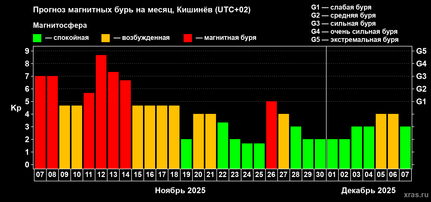 Прогноз магнитных бурь в Кишинёве — 7 ноября 2025 года