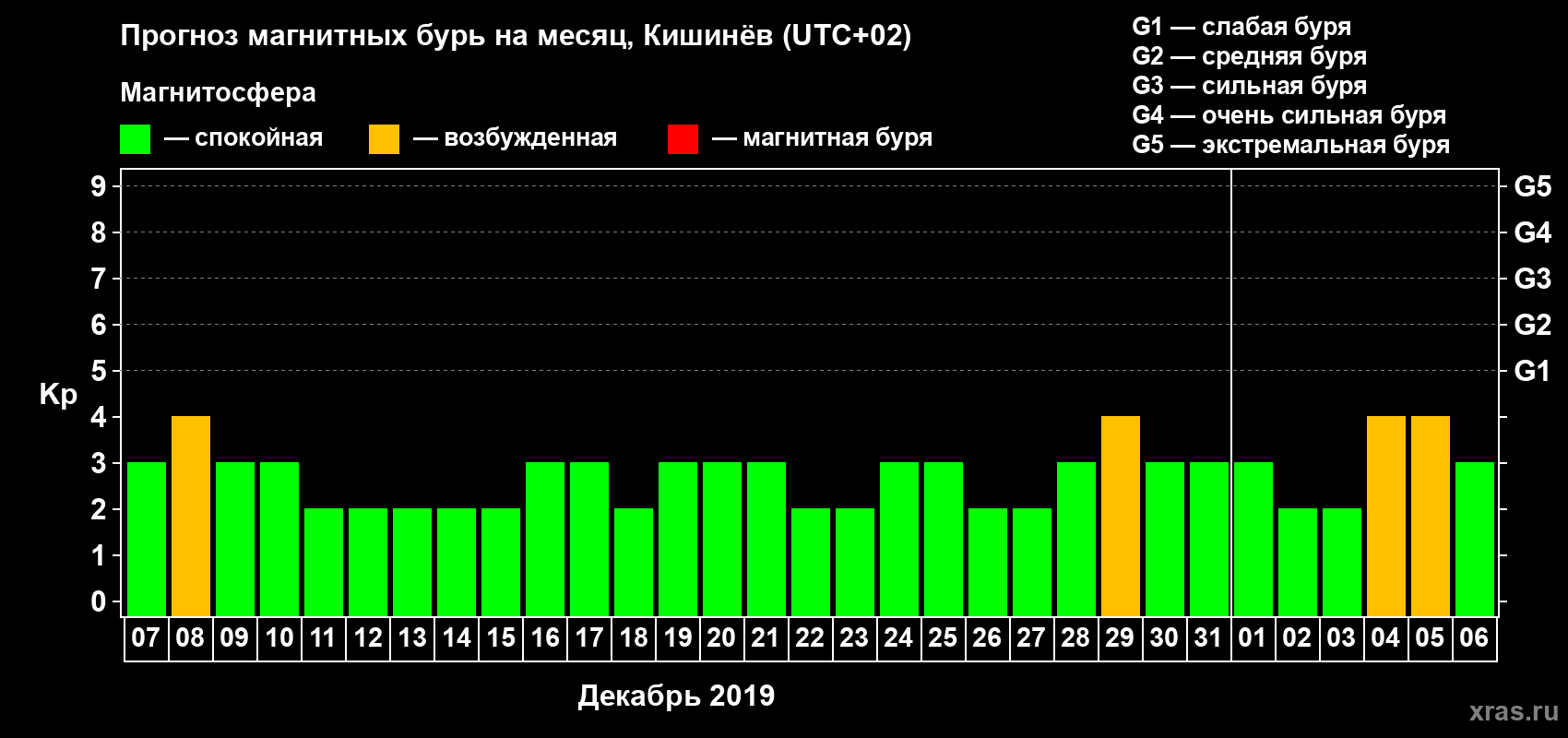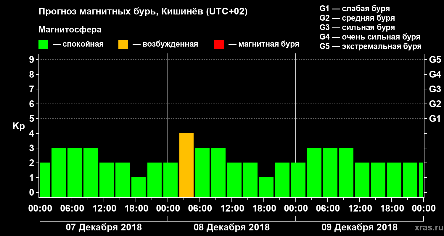 Прогноз магнитных бурь в Кишинёве — 7 декабря 2018 года