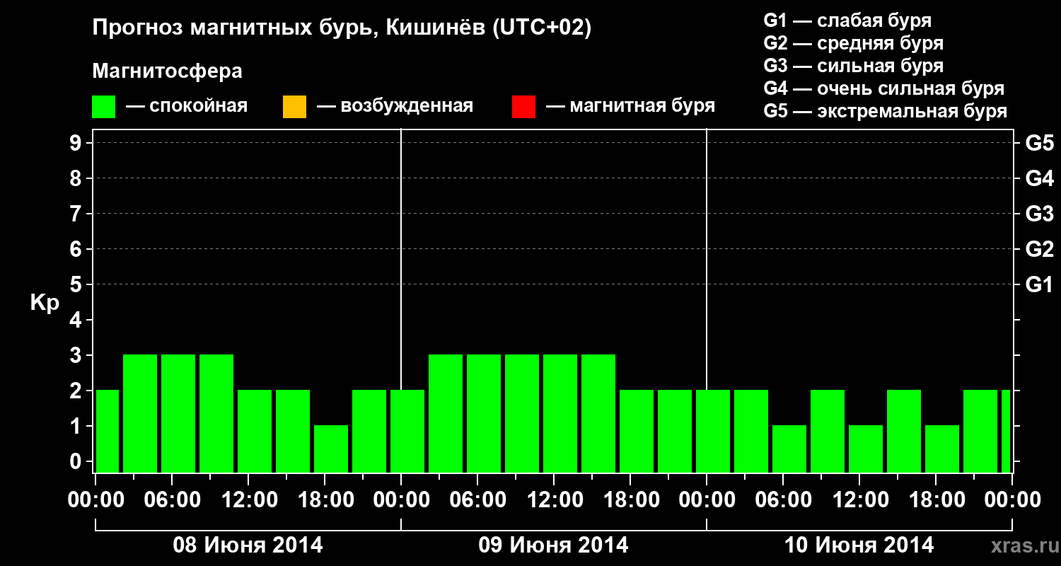 Прогноз магнитных бурь в Кишинёве — 8 июня 2014 года