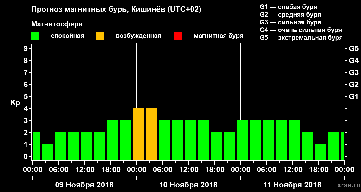 Прогноз магнитных бурь в Кишинёве — 9 ноября 2018 года