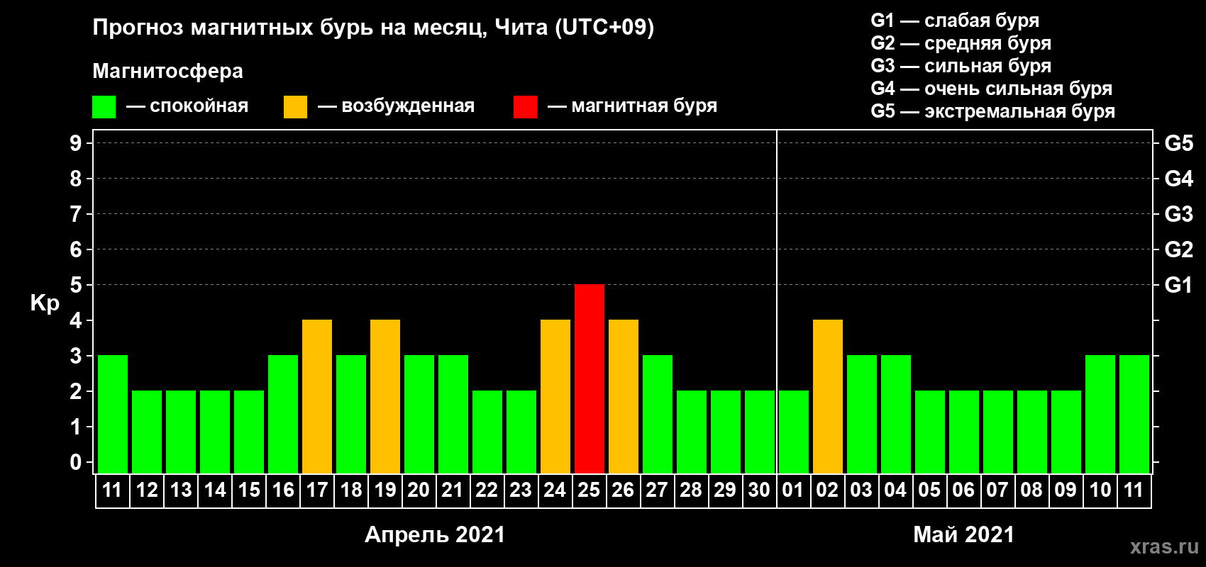 Прогноз магнитных бурь в Чите на 11 апреля 2021 года