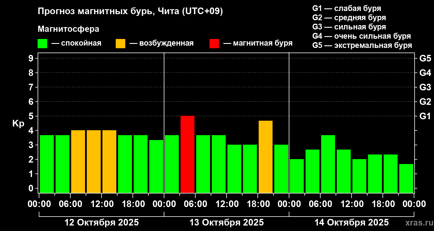 Прогноз магнитных бурь в Чите на 12 октября 2025 года