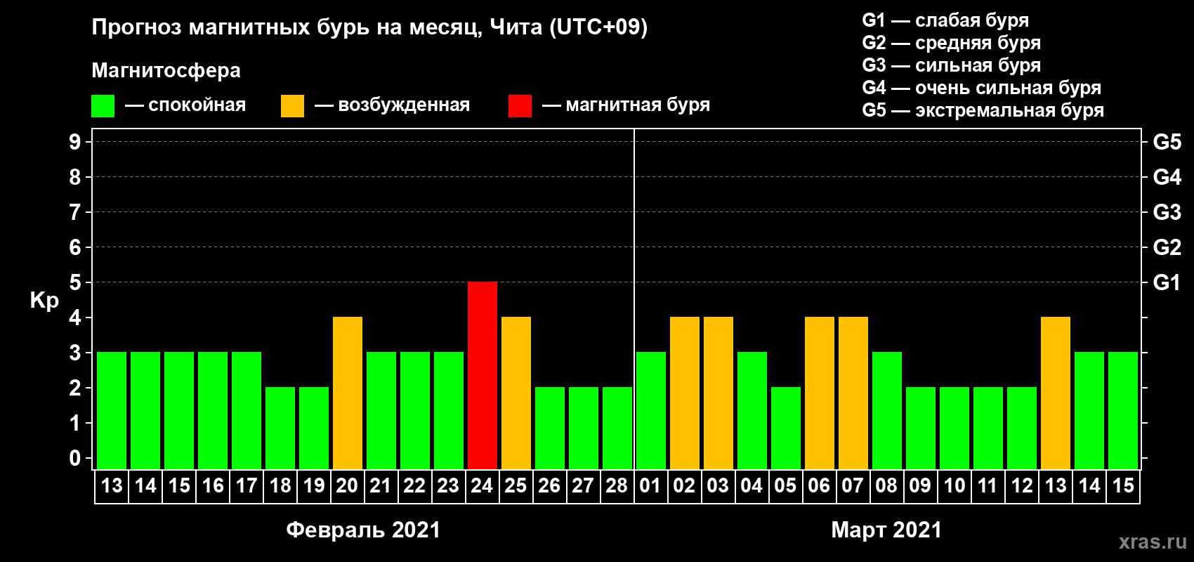 Прогноз магнитных бурь в Чите — 13 февраля 2021 года