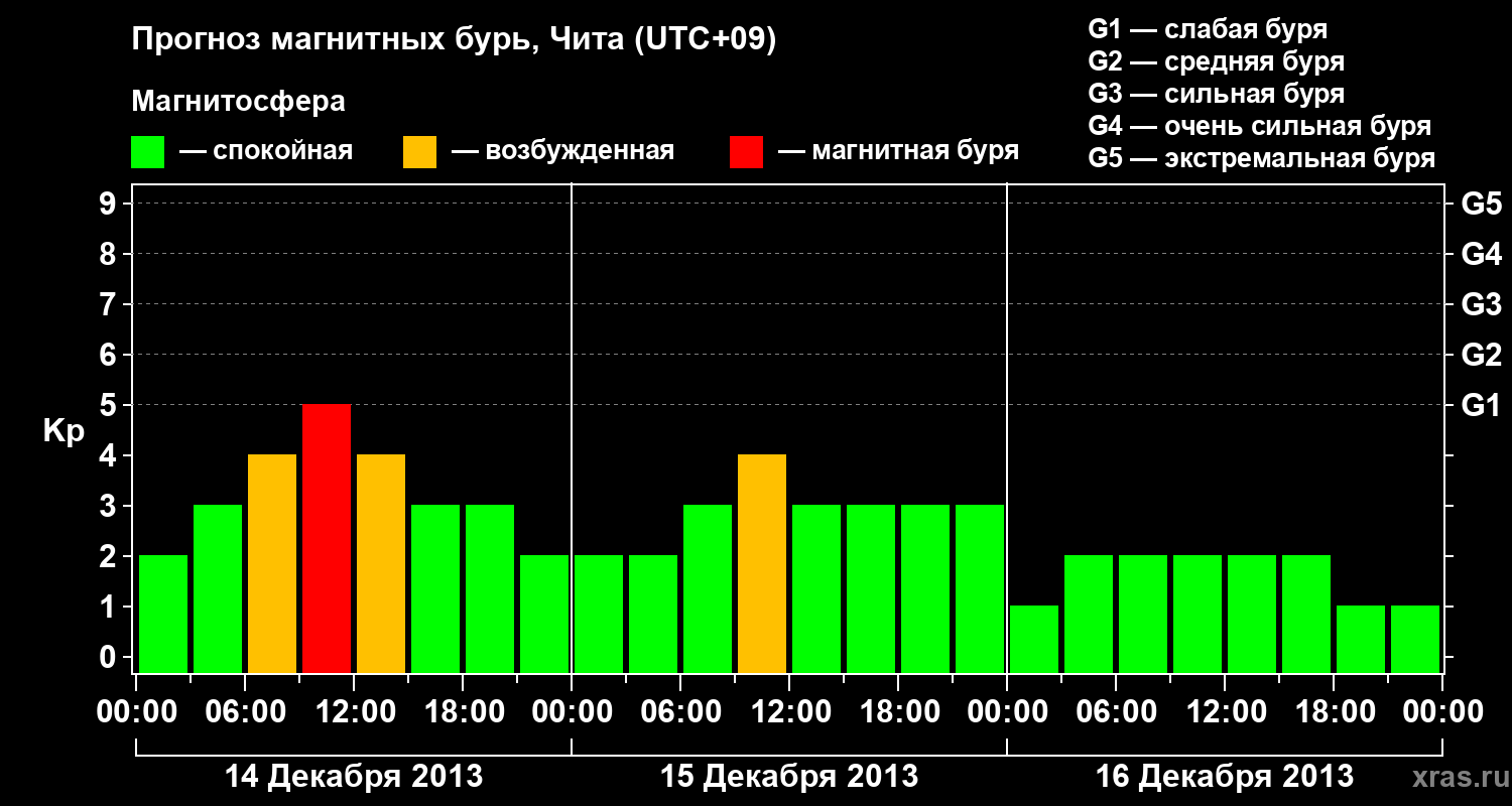 Прогноз магнитных бурь в Чите — 14 декабря 2013 года