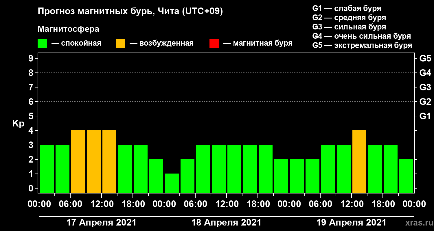 Прогноз магнитных бурь в Чите на 17 апреля 2021 года