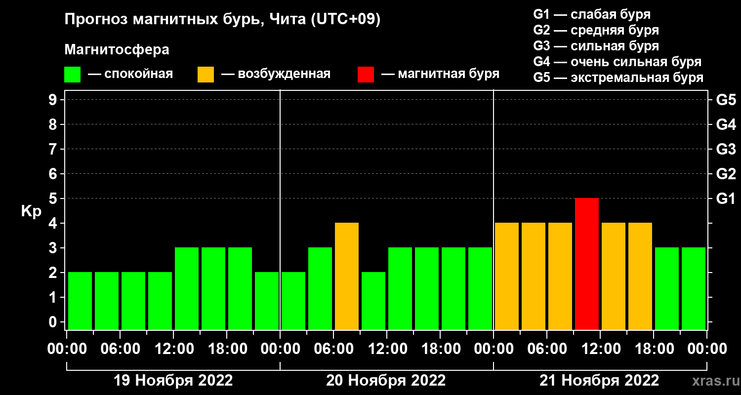 Прогноз магнитных бурь в Чите — 19 ноября 2022 года