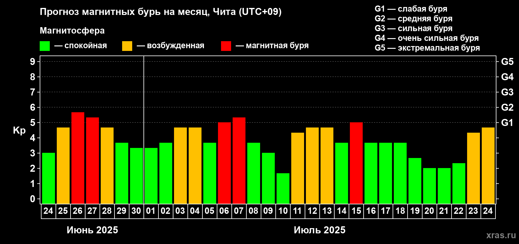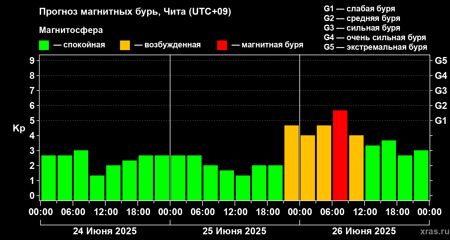 Прогноз магнитных бурь в Чите — 24 июня 2025 года