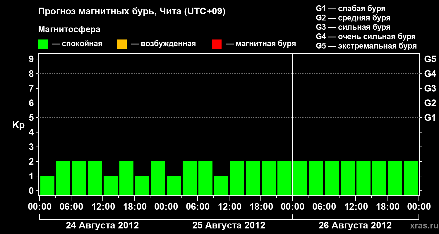 Прогноз магнитных бурь в Чите — 24 августа 2012 года