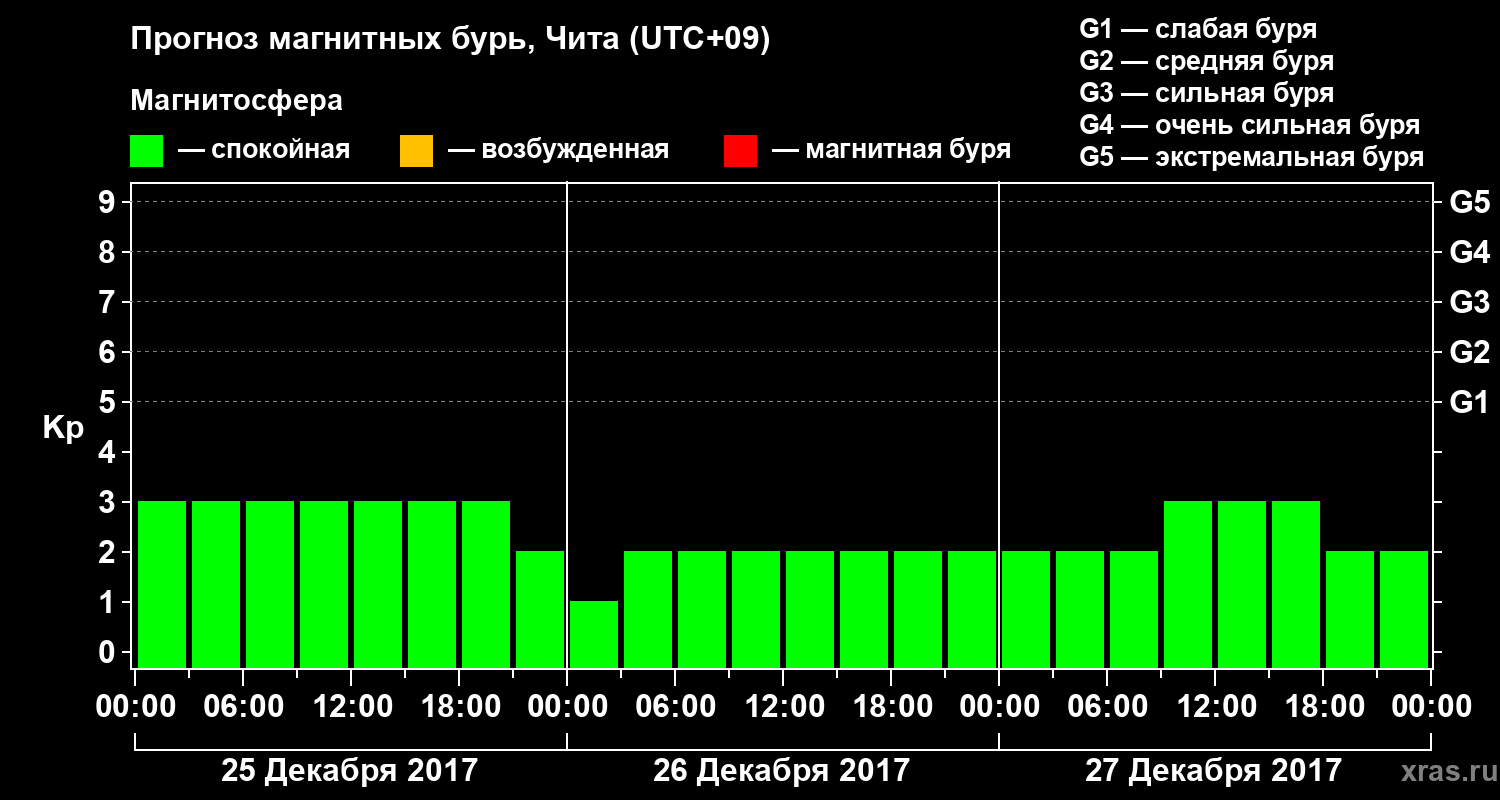 Прогноз магнитных бурь в Чите — 25 декабря 2017 года