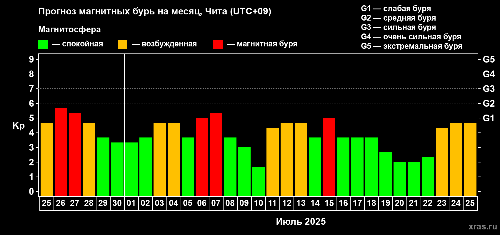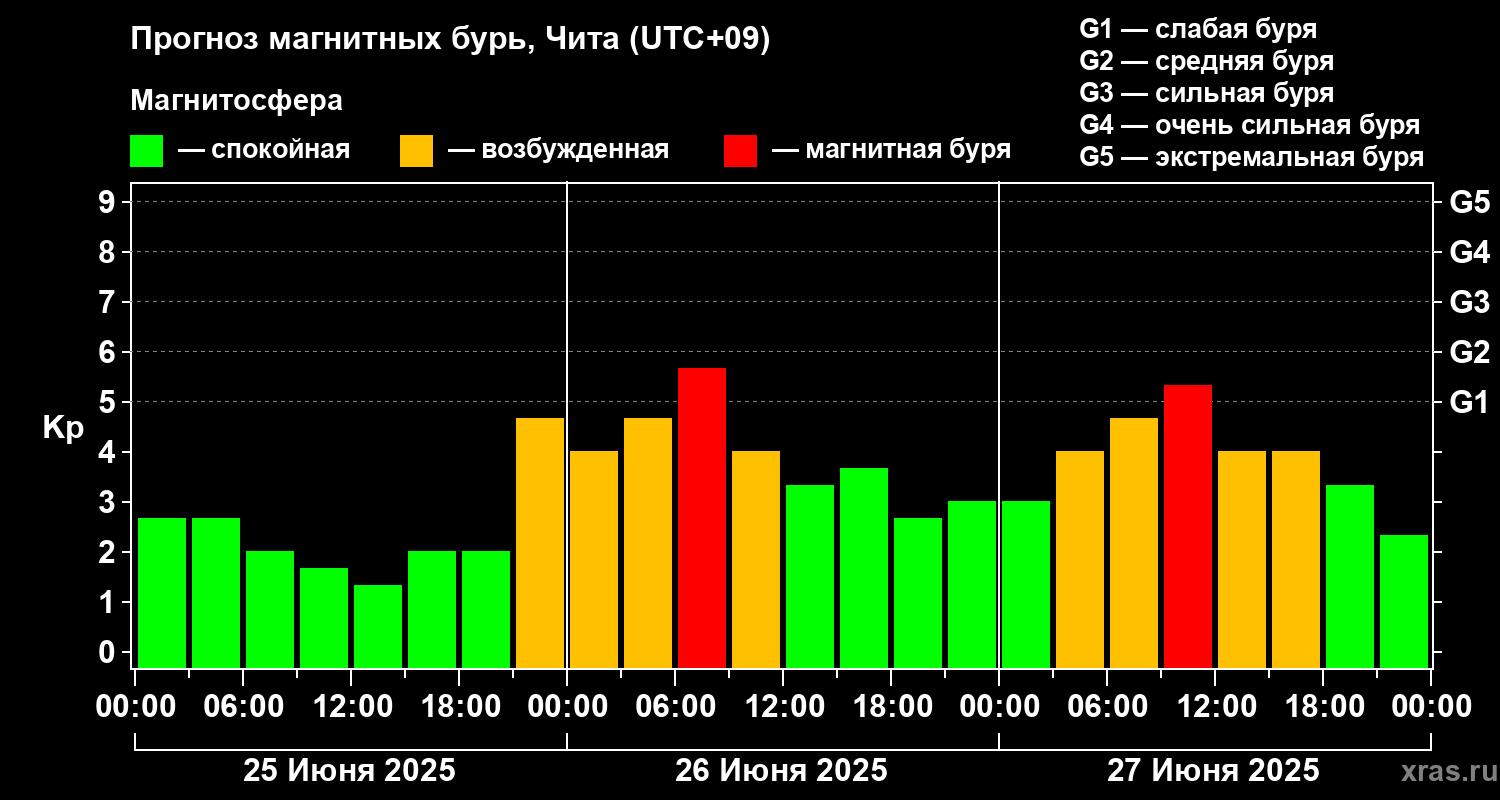 Прогноз магнитных бурь в Чите на 25 июня 2025 года