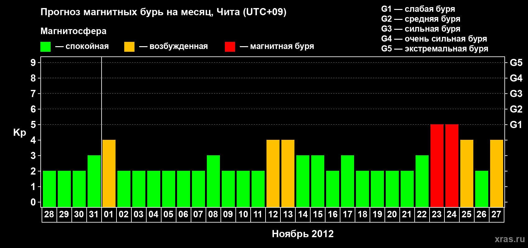 Прогноз магнитных бурь в Чите на 28 октября 2012 года