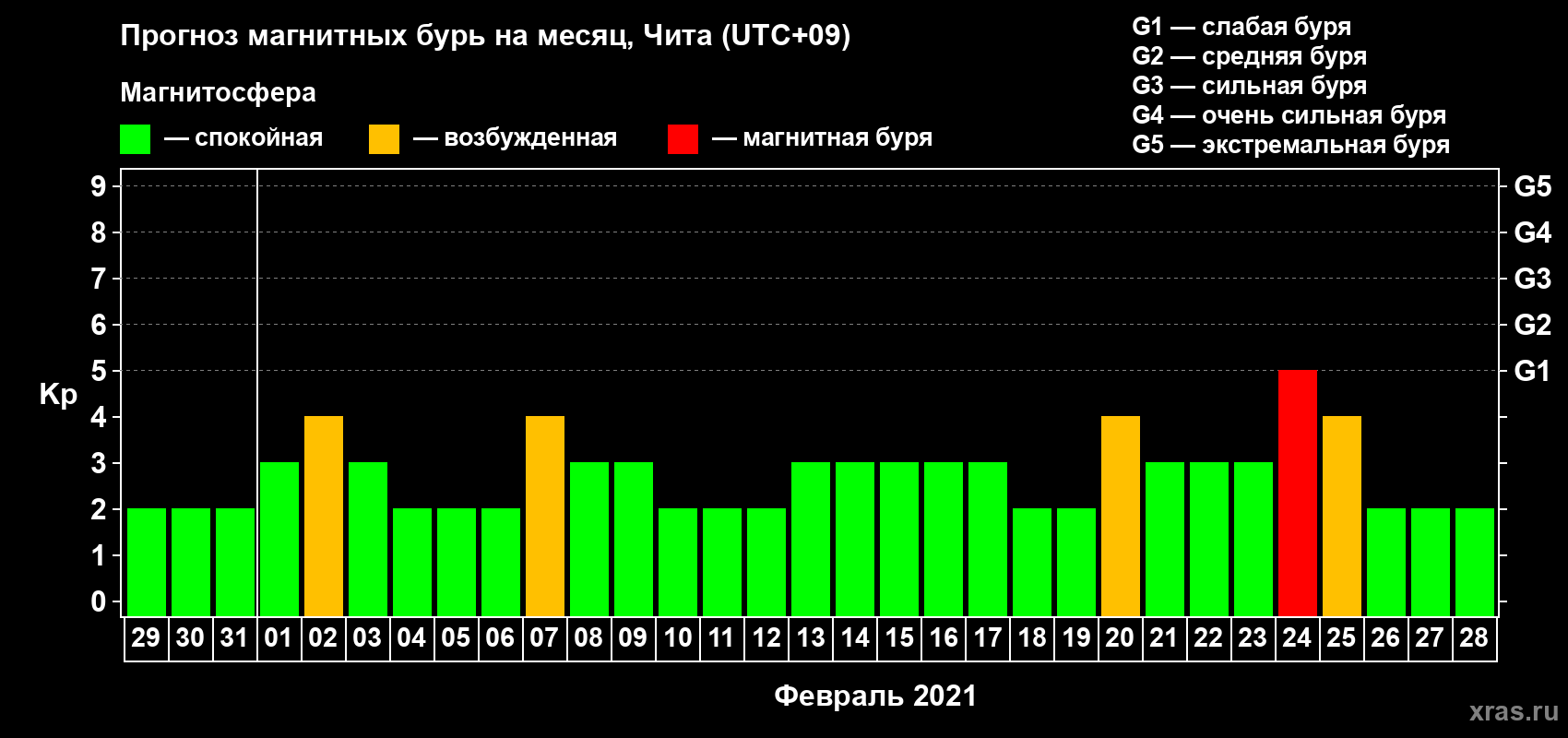 Прогноз магнитных бурь в Чите на 29 января 2021 года