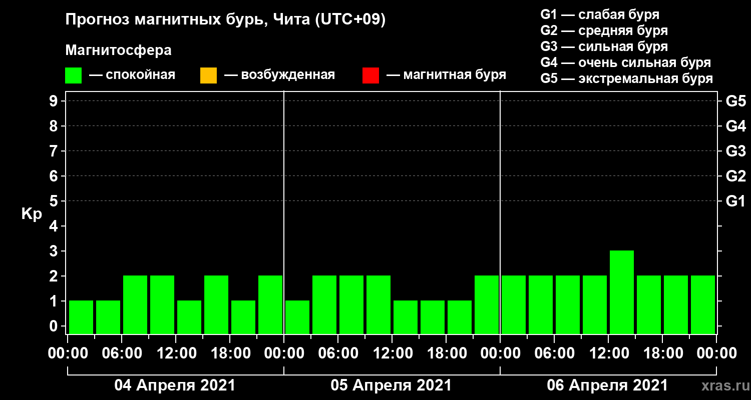 Прогноз магнитных бурь в Чите на 4 апреля 2021 года