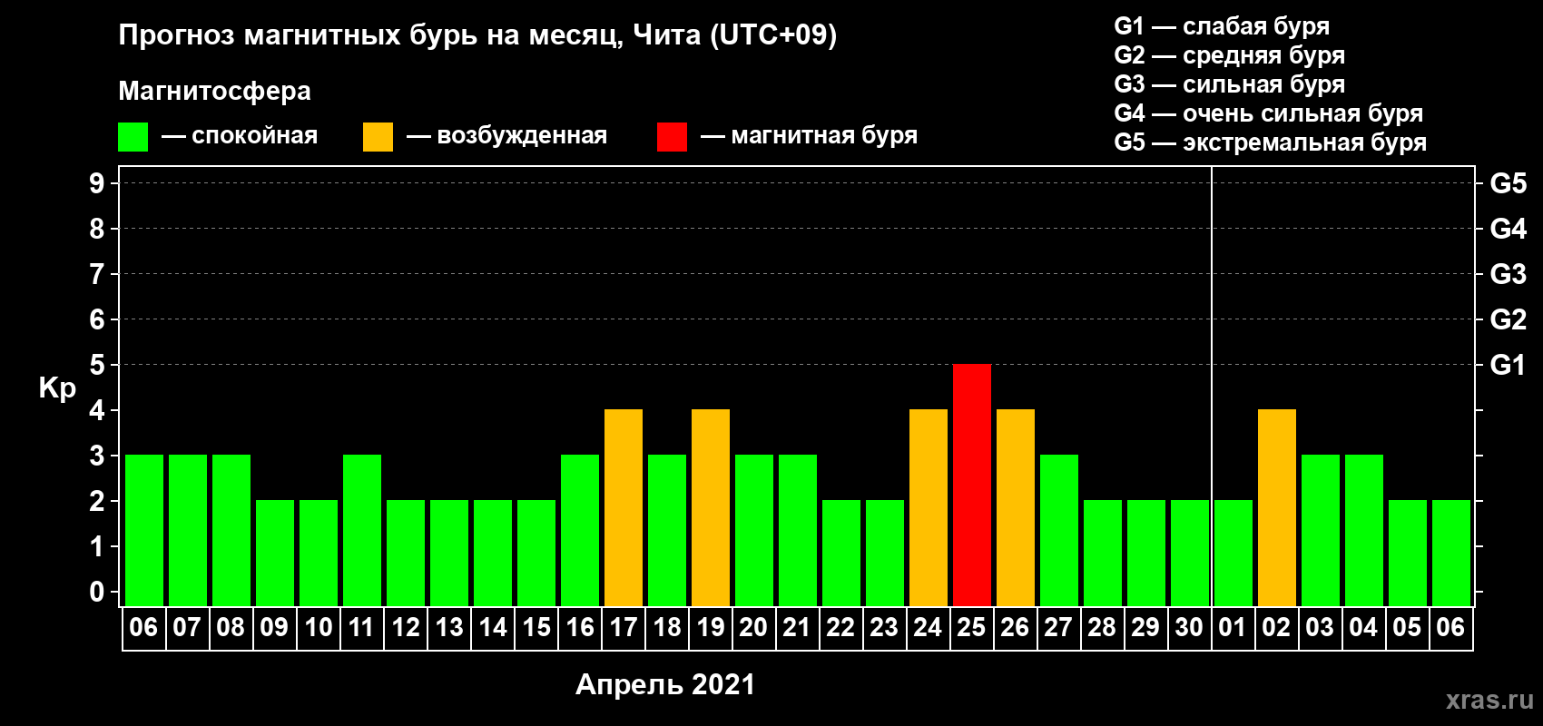 Прогноз магнитных бурь в Чите на 6 апреля 2021 года