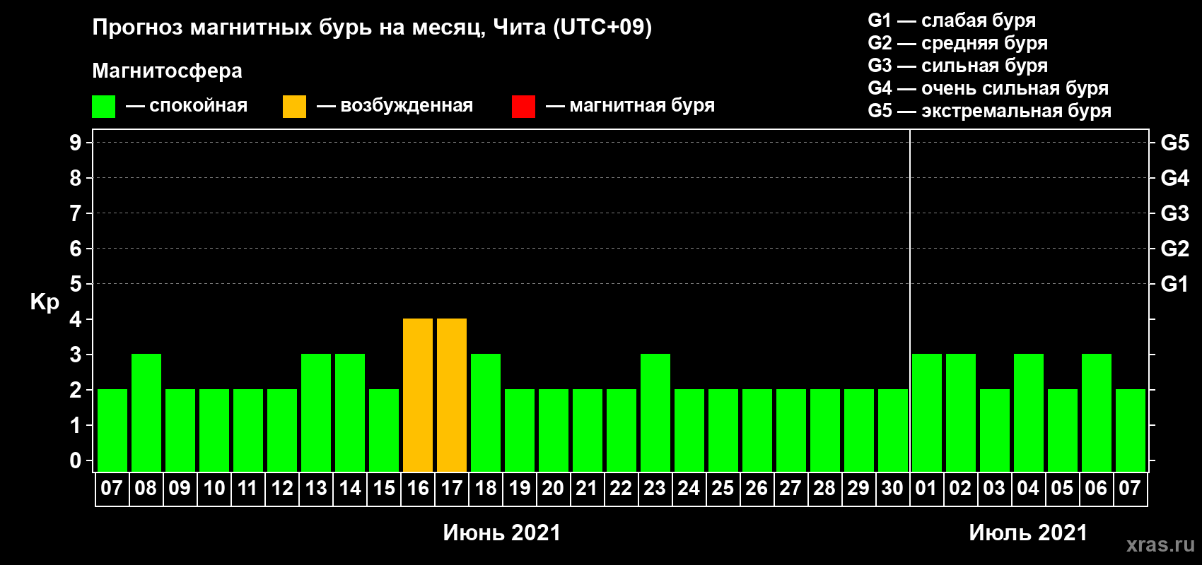 Прогноз магнитных бурь в Чите — 7 июня 2021 года