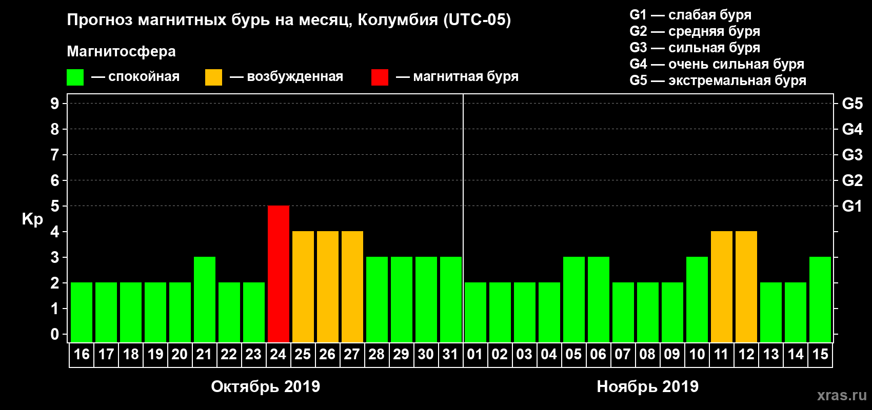 Прогноз магнитных бурь в Колумбии — 16 октября 2019 года