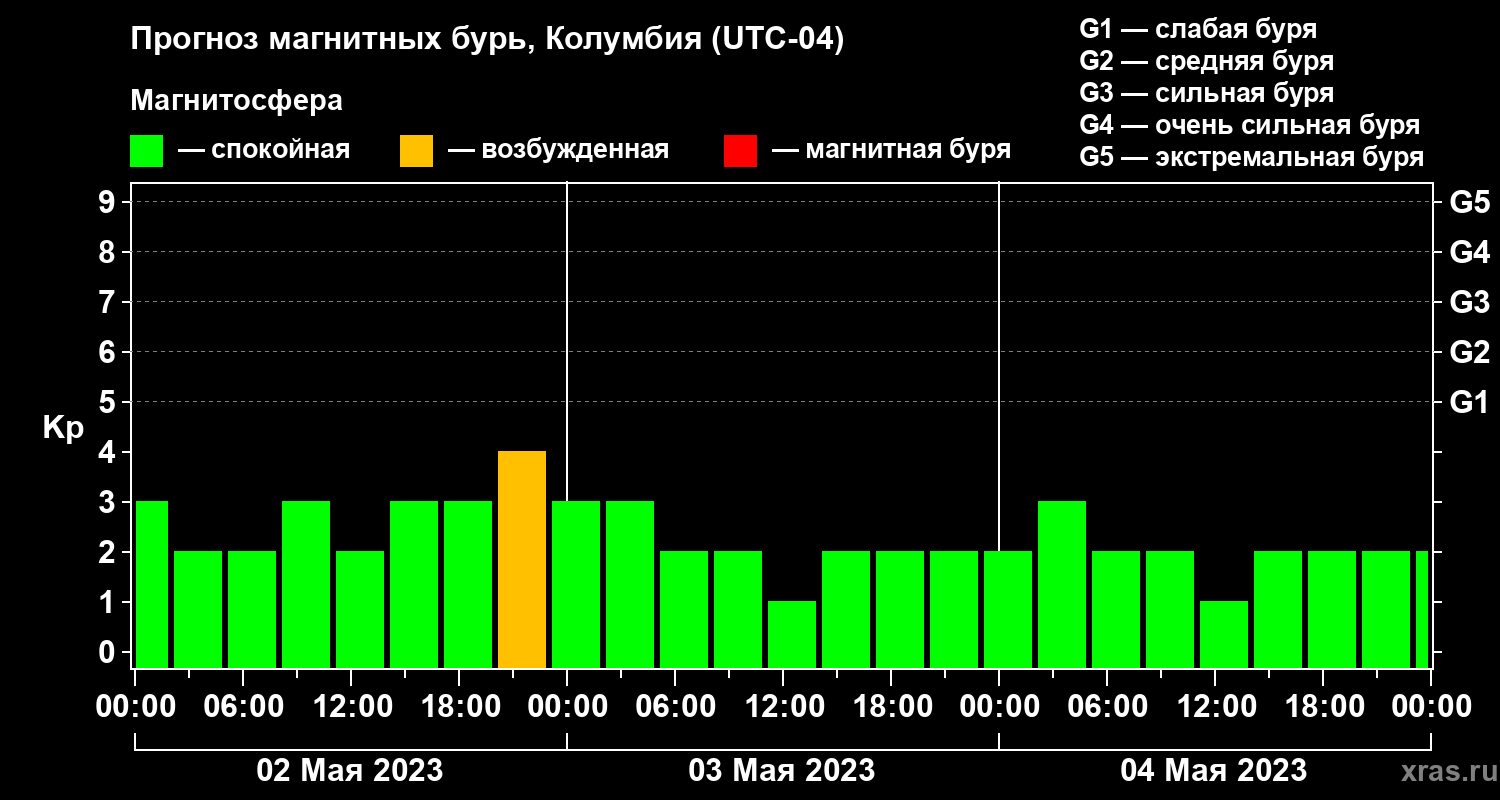 Прогноз магнитных бурь в Колумбии — 2 мая 2023 года