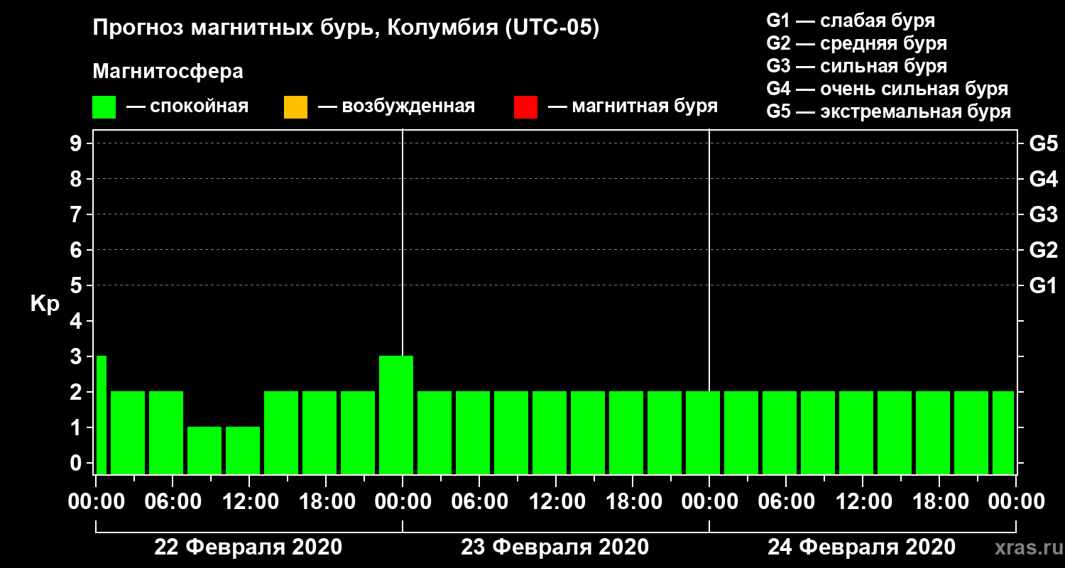 Прогноз магнитных бурь в Колумбии — 22 февраля 2020 года
