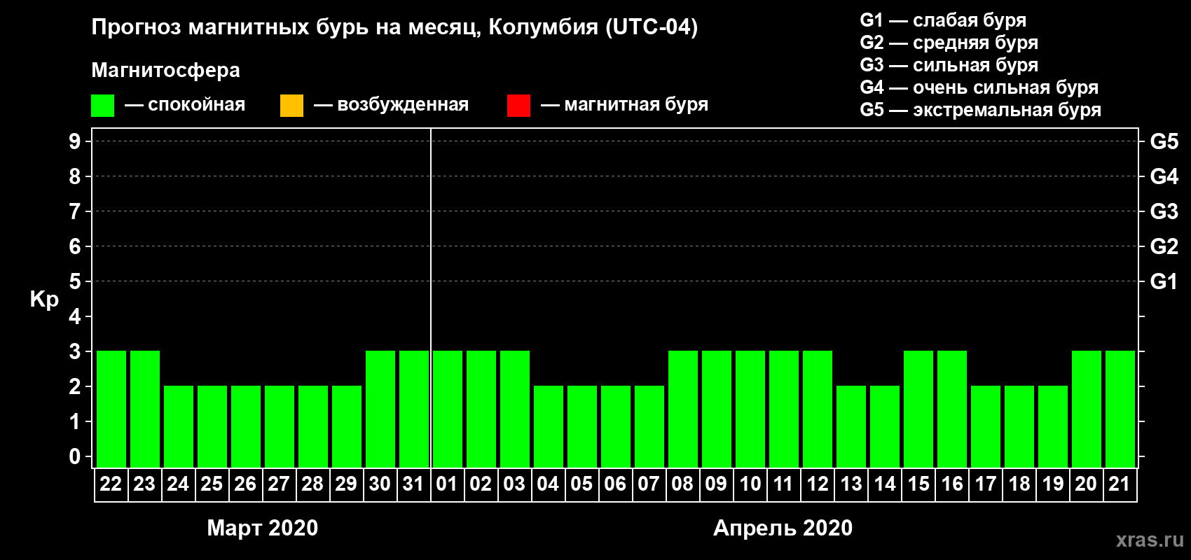 Прогноз магнитных бурь в Колумбии — 22 марта 2020 года