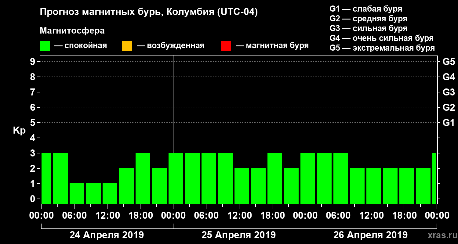 Прогноз магнитных бурь в Колумбии на 24 апреля 2019 года