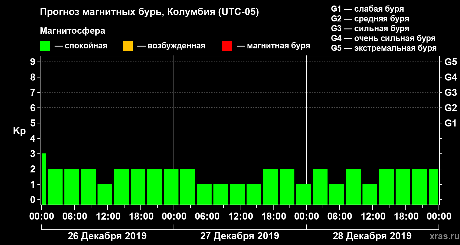 Прогноз магнитных бурь в Колумбии — 26 декабря 2019 года