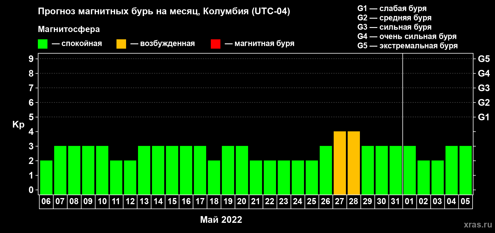 Прогноз магнитных бурь в Колумбии — 6 мая 2022 года