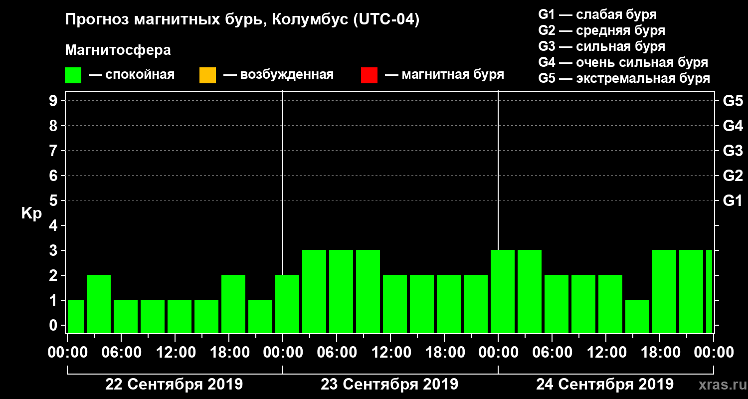 Прогноз магнитных бурь в Колумбусе — 22 сентября 2019 года