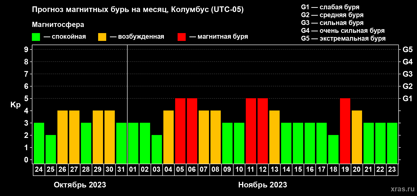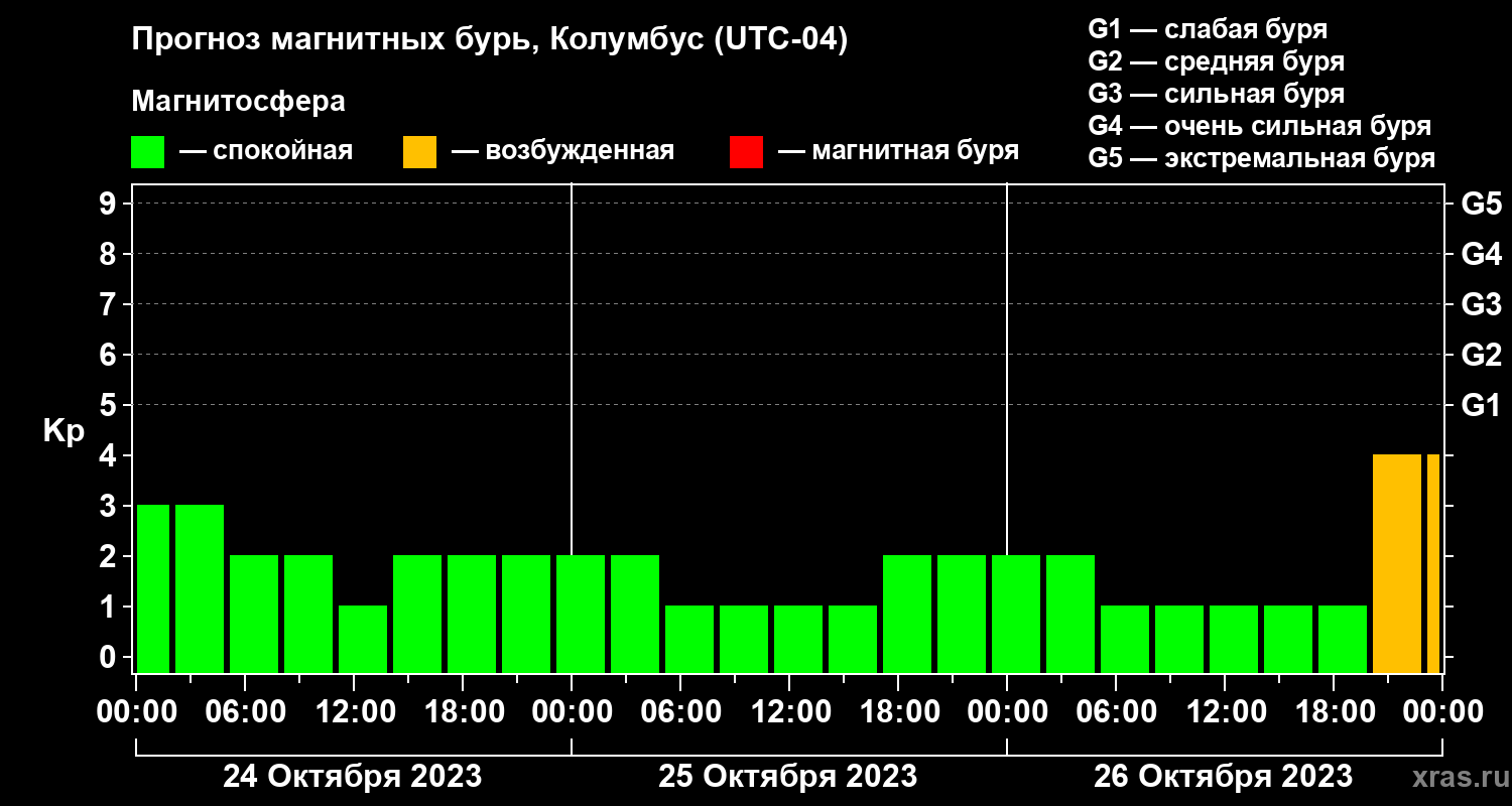 Прогноз магнитных бурь в Колумбусе — 24 октября 2023 года