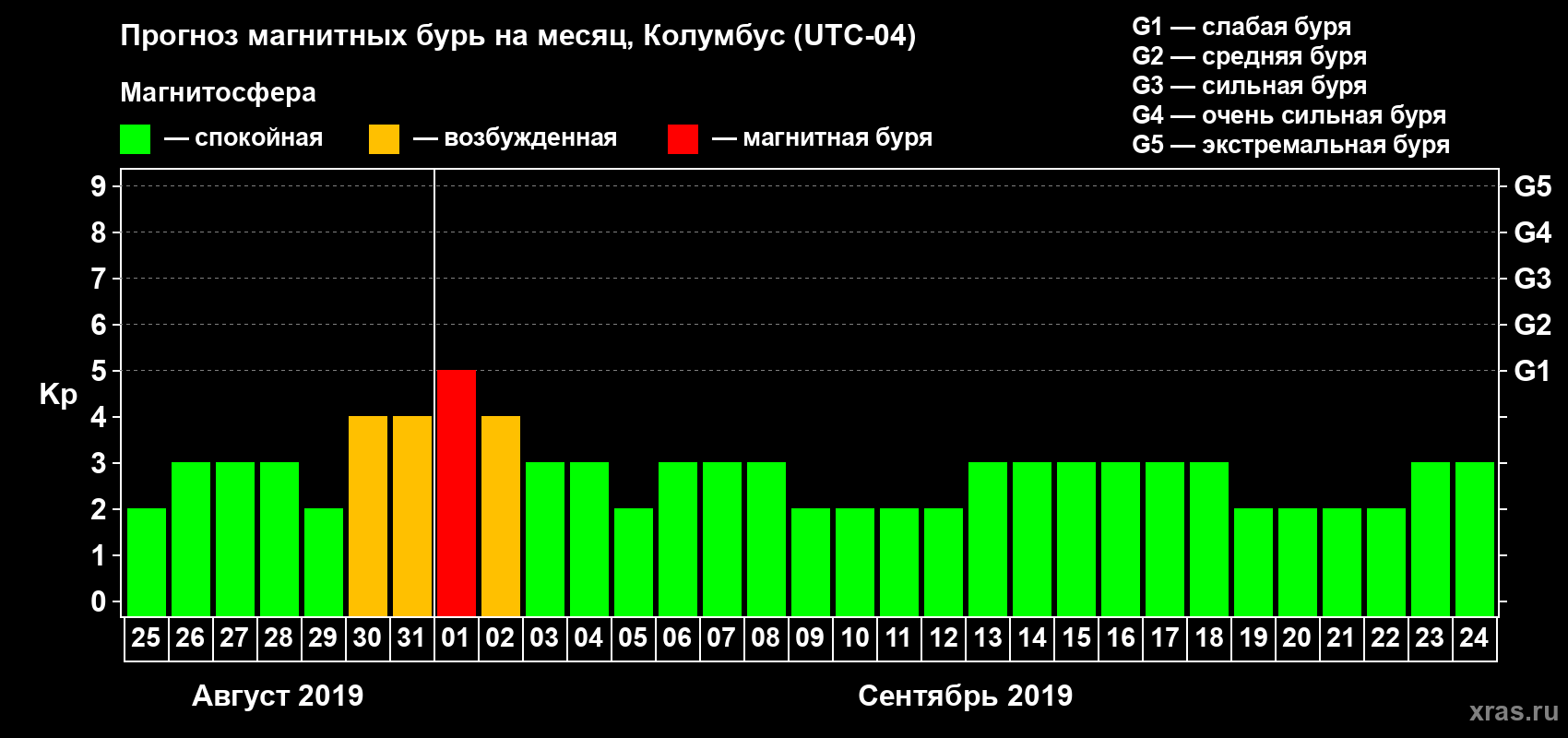 Прогноз магнитных бурь в Колумбусе — 25 августа 2019 года