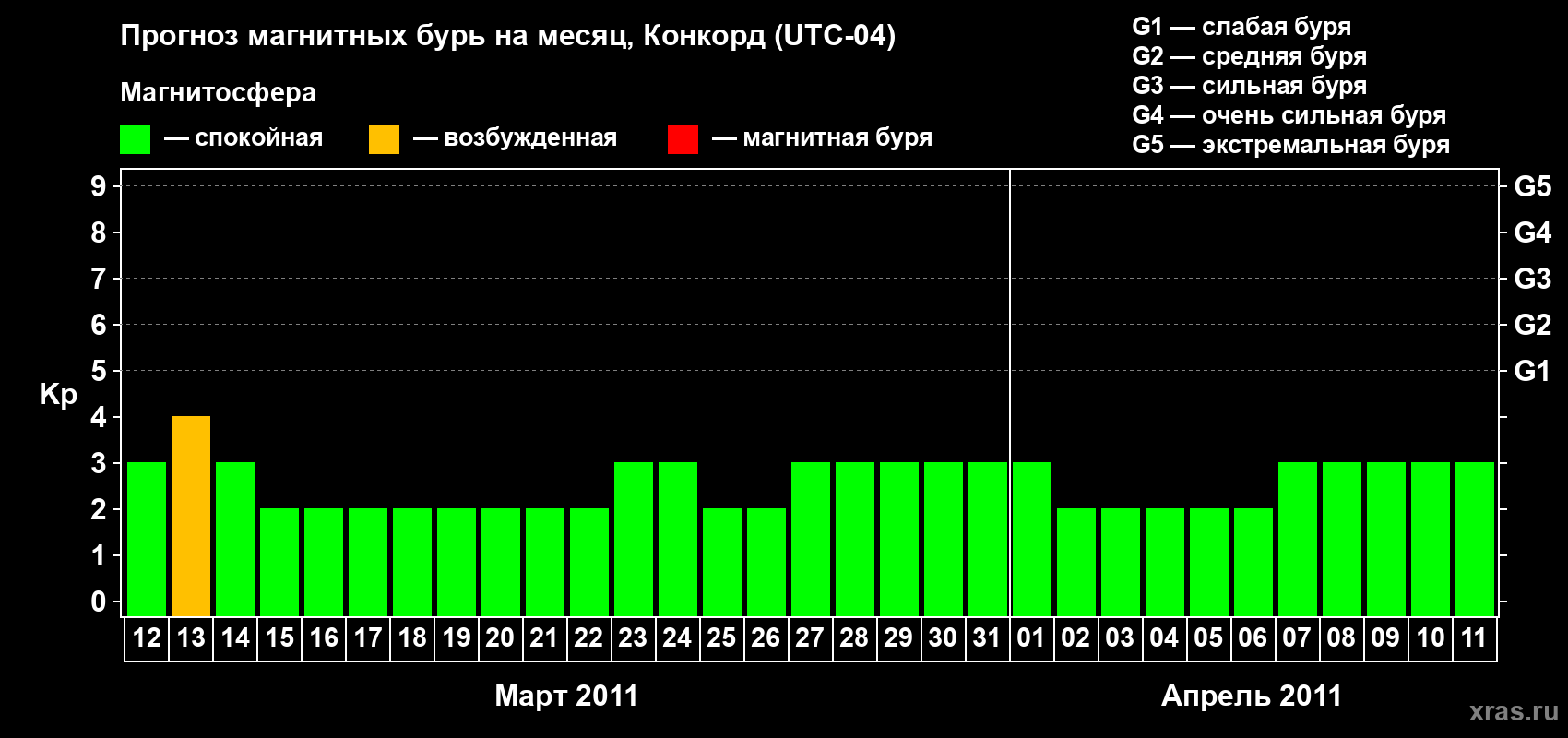 Прогноз магнитных бурь в Конкорде — 12 марта 2011 года