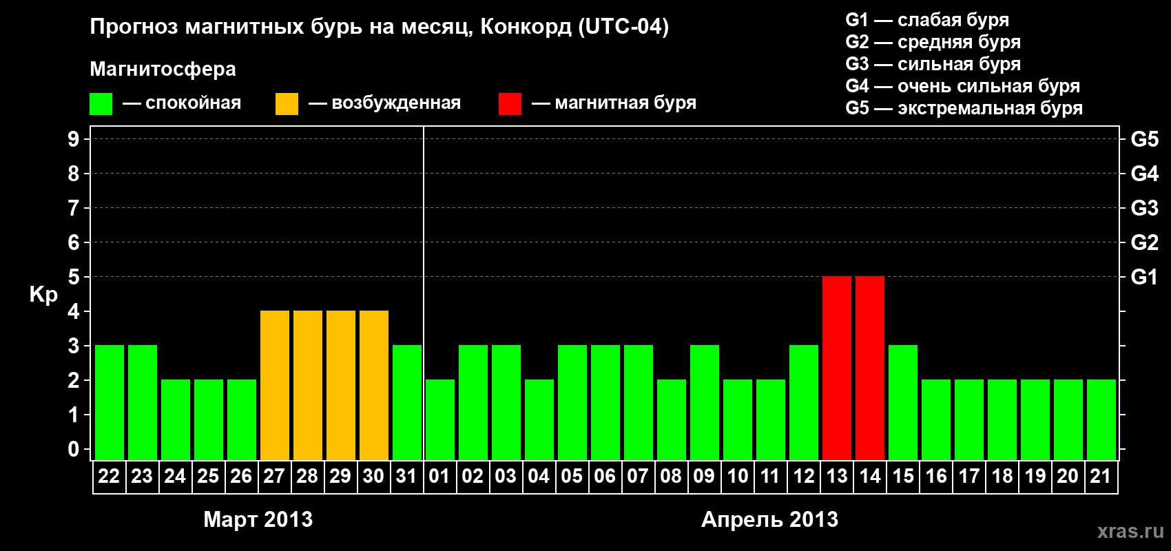 Прогноз магнитных бурь в Конкорде на 22 марта 2013 года