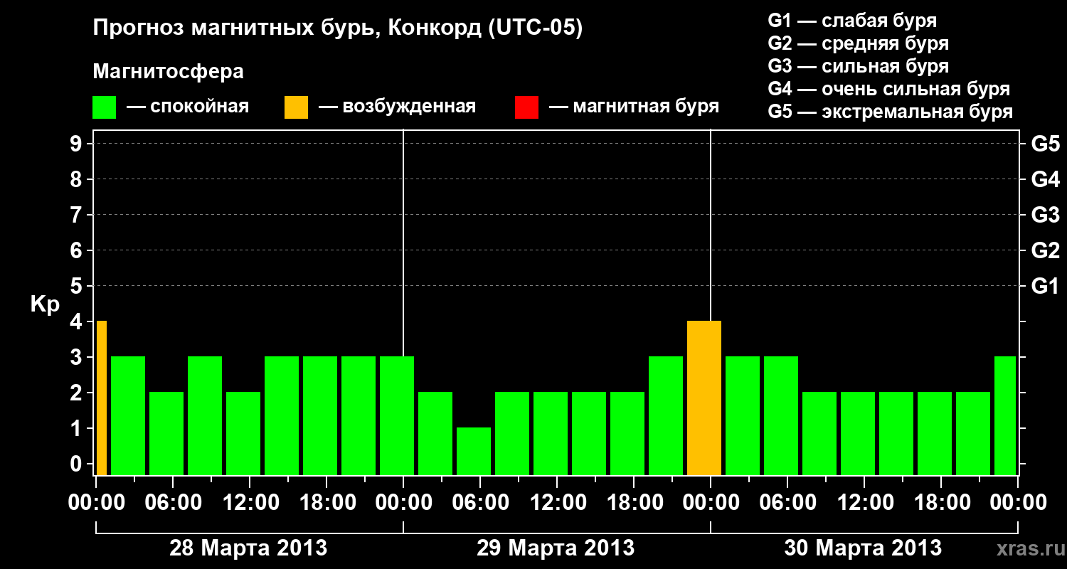 Прогноз магнитных бурь в Конкорде на 28 марта 2013 года