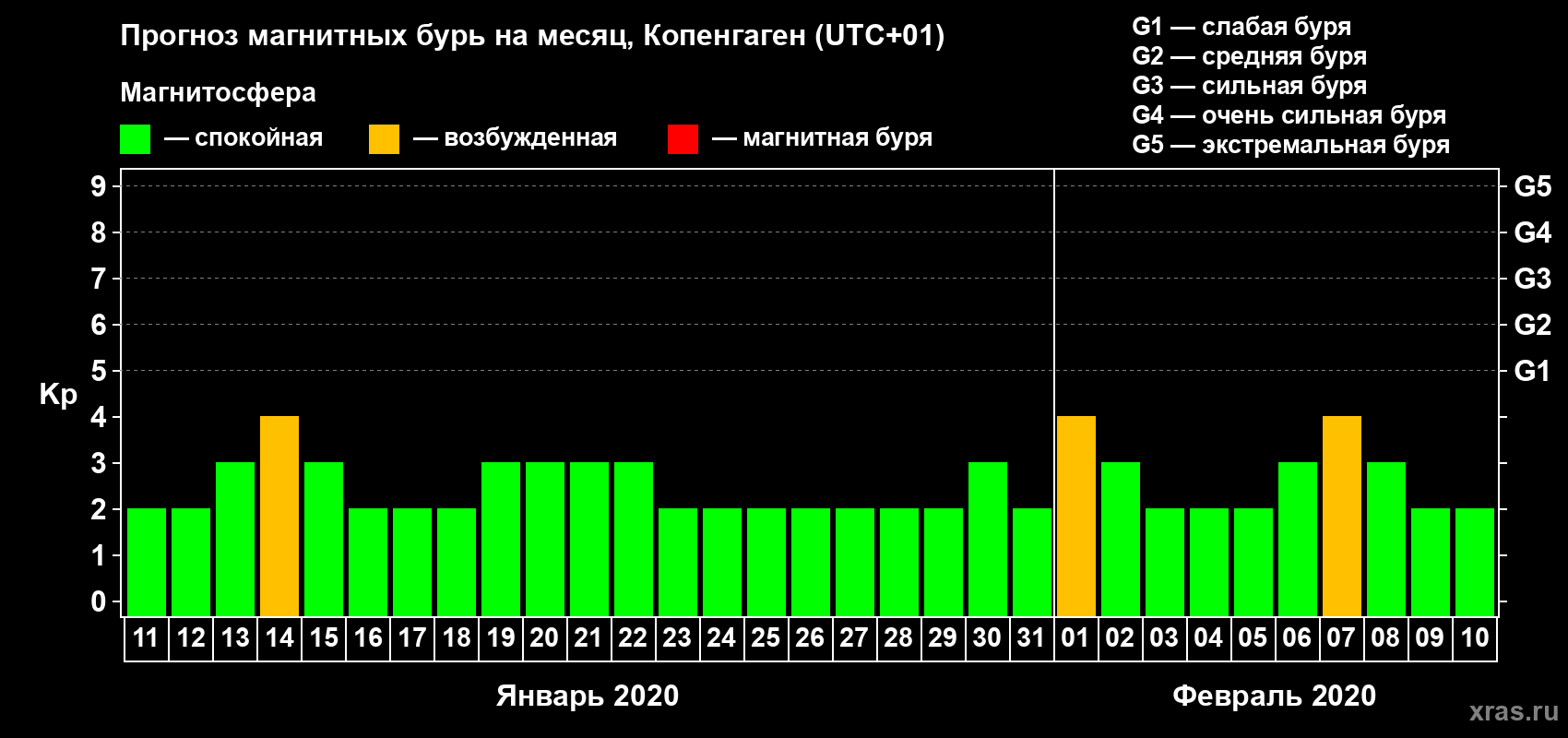 Прогноз магнитных бурь в Копенгагене — 11 января 2020 года