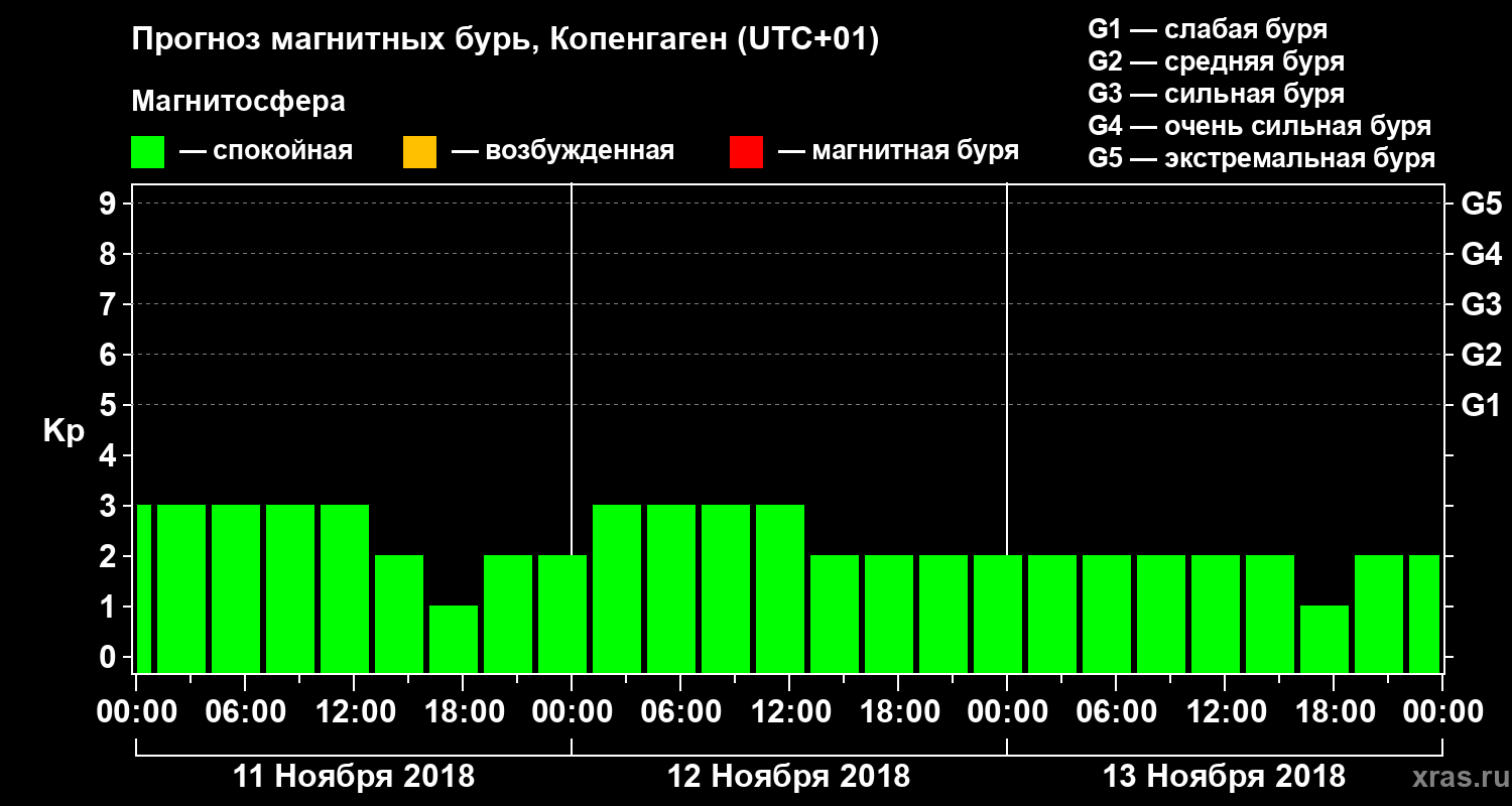 Прогноз магнитных бурь в Копенгагене — 11 ноября 2018 года