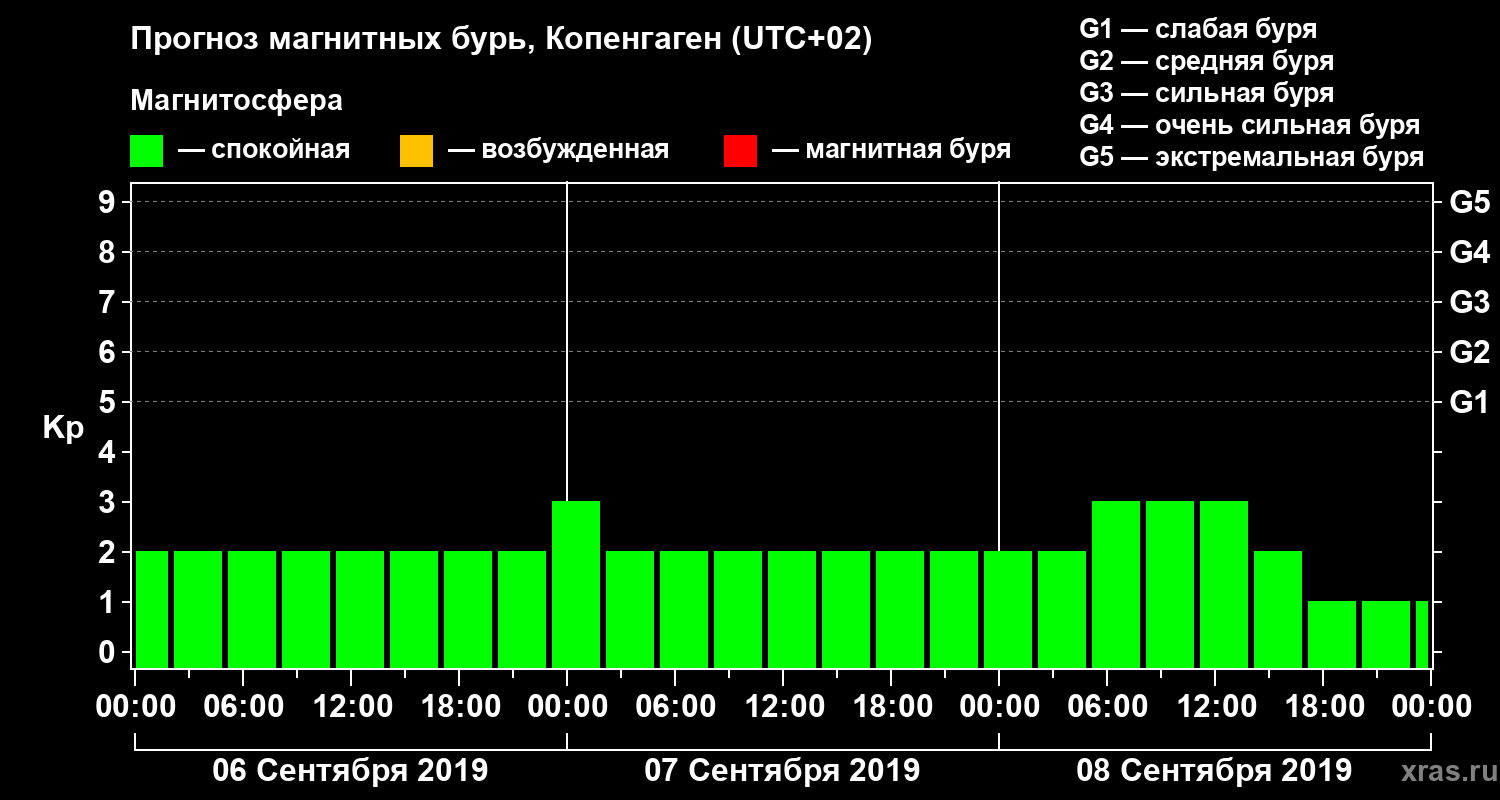 Прогноз магнитных бурь в Копенгагене — 6 сентября 2019 года