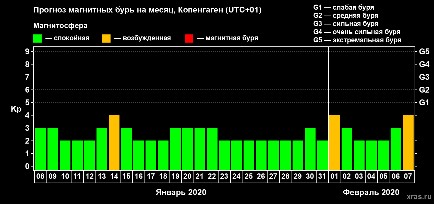 Прогноз магнитных бурь в Копенгагене — 8 января 2020 года
