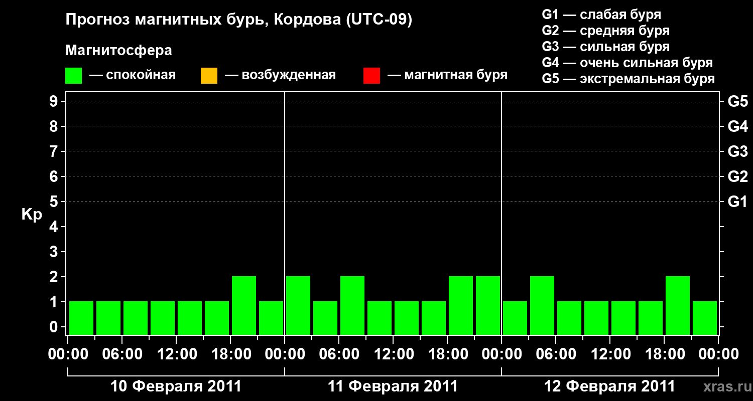 Прогноз магнитных бурь в Кордове на 10 февраля 2011 года