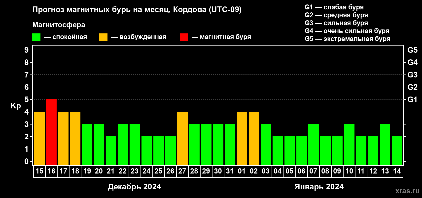 Прогноз магнитных бурь в Кордове — 15 декабря 2023 года