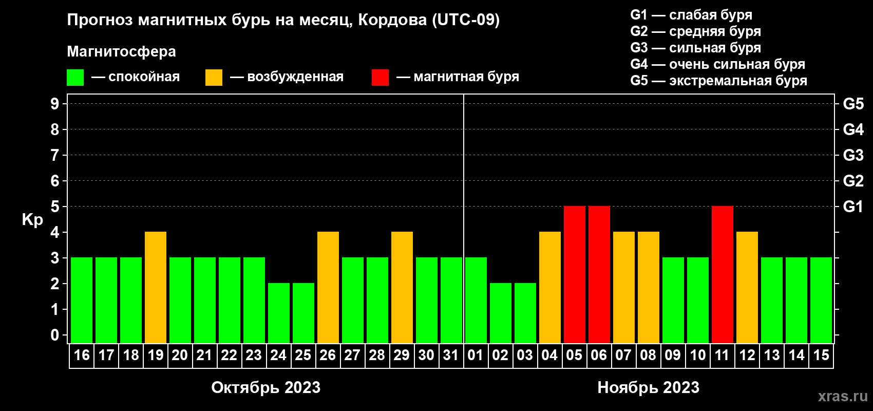 Прогноз магнитных бурь в Кордове — 16 октября 2023 года
