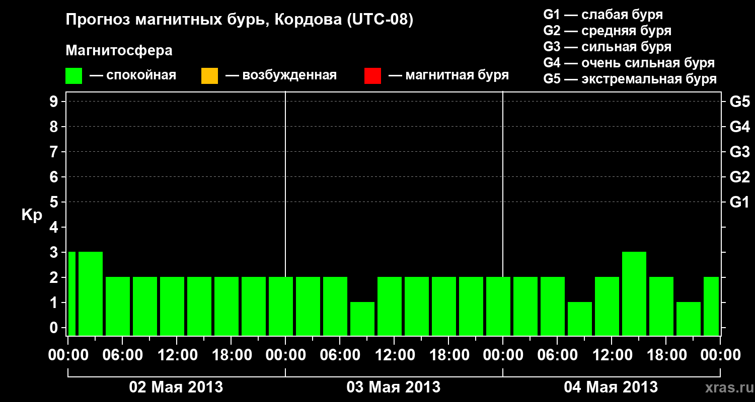Прогноз магнитных бурь в Кордове — 2 мая 2013 года
